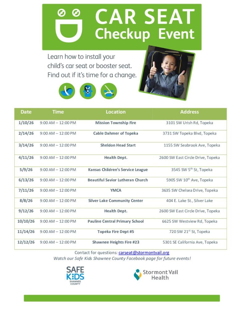 Visit with a Certified Child Passenger Safety Technician. Learn how to install your child’s car seat or booster seat. Find out if it’s time for a change.