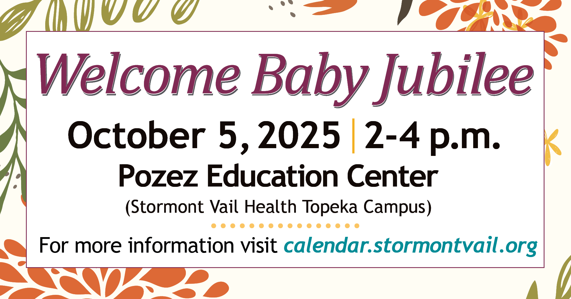 Stormont Vail Health Pozez Education Center 1500 SW 10th Ave, Topeka, KS, United StatesSupport for Your Family’s Journey—from First Kicks to First Steps Welcome Baby Jubilee is more than a celebration for new and expecting families—it’s a warm welcome into our community. What…